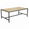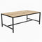 Mesa comedor modelo Tarima en hierro y tablero de lamas de pino macizo natural barnizado en mate.